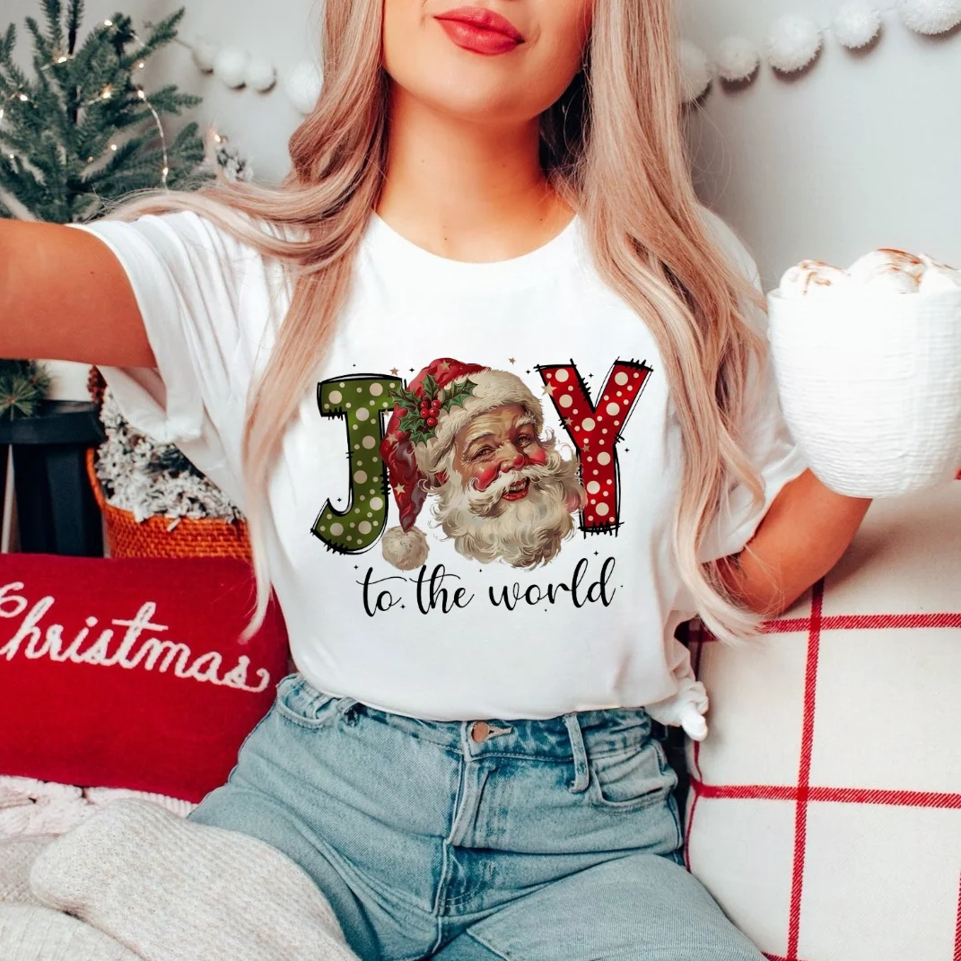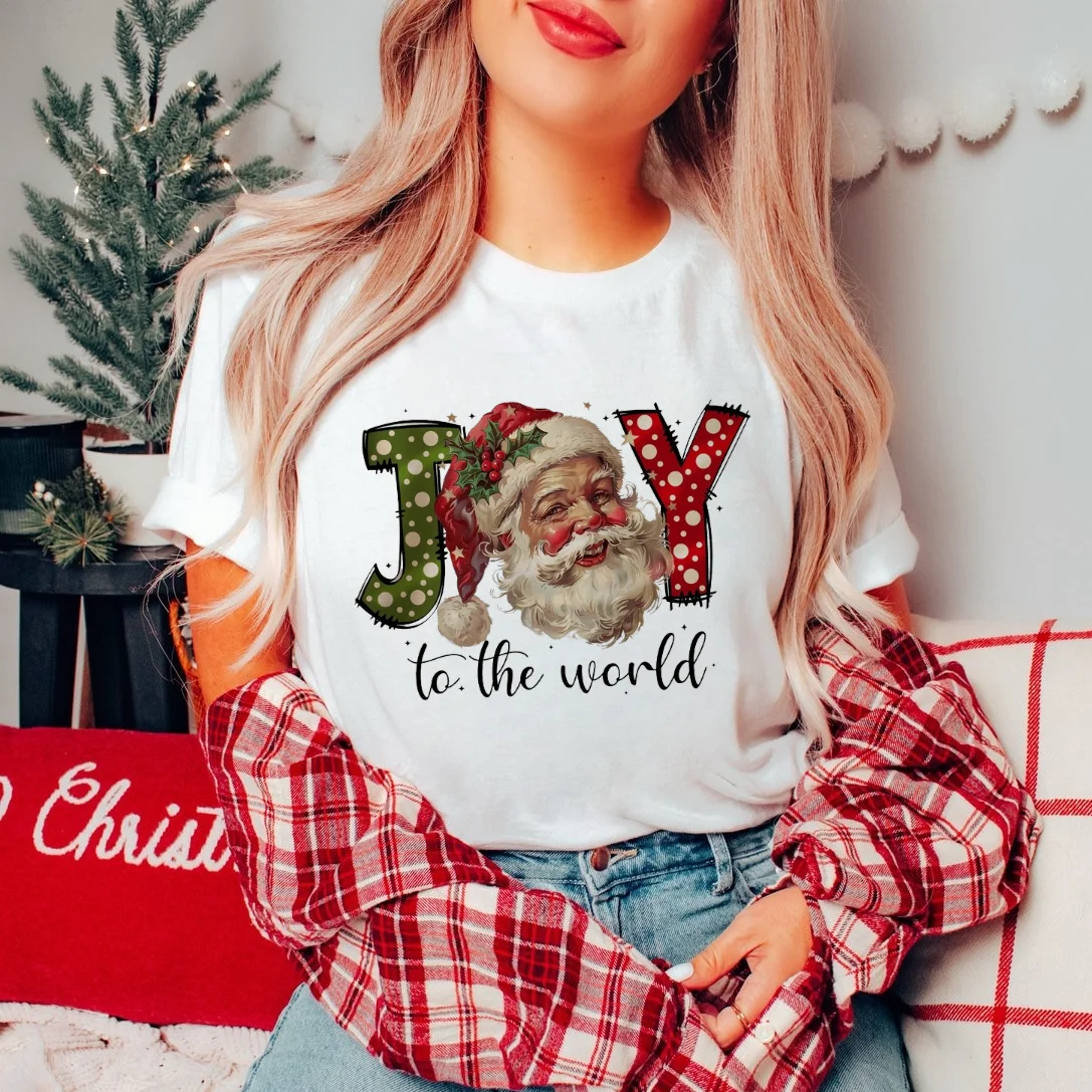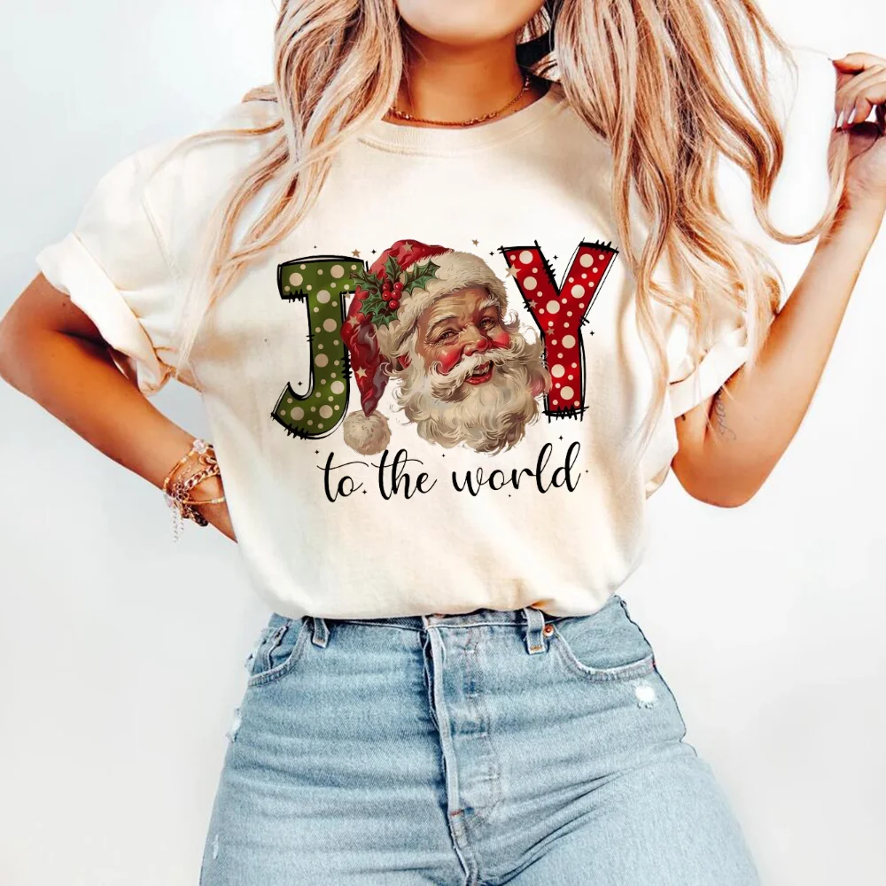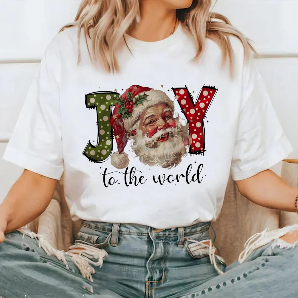 Cute And Sweet 90s Merry Christmas Pattern T-Shirt Fashion O-Neck Women’s Printed Clothing Happy New Year Printed Short Sleeve