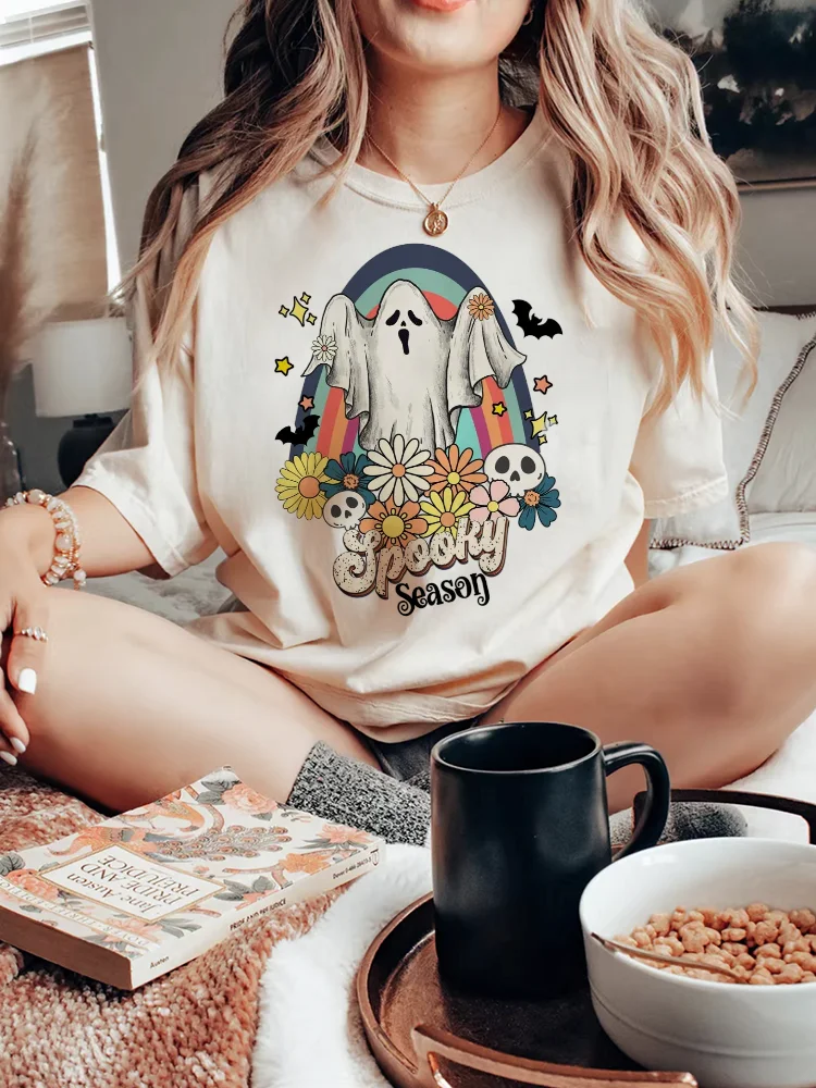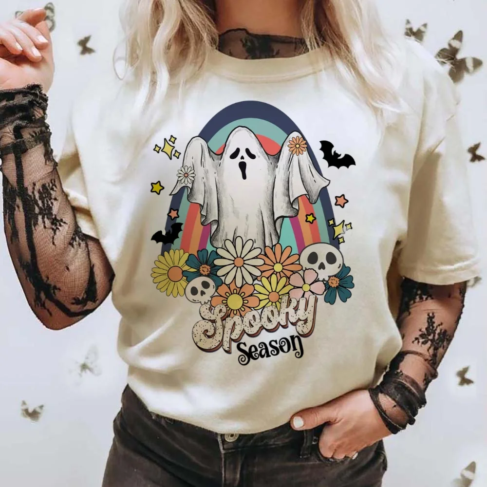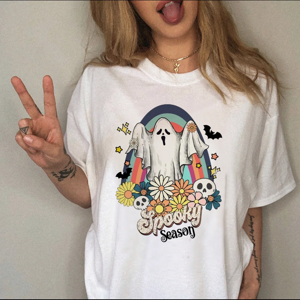 Halloween Style Trendy Cute Women’s Clothing Pattern Fashionable Printed T-Shirt Short Sleeved Women’s Fun Versatile Top T-Shirt
