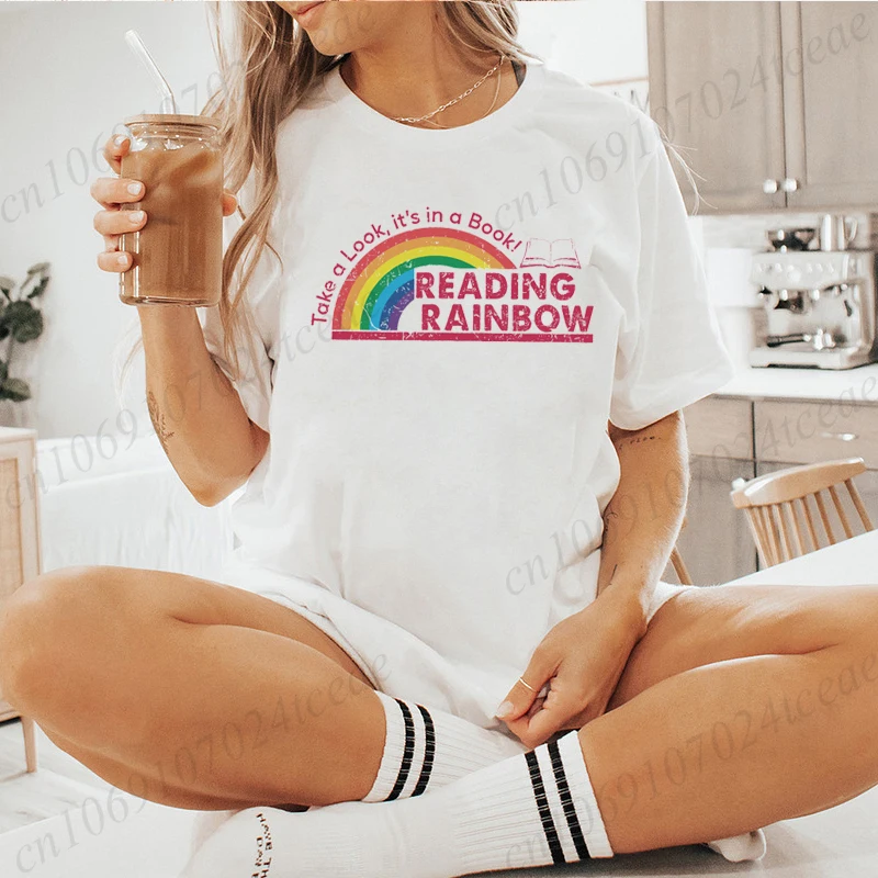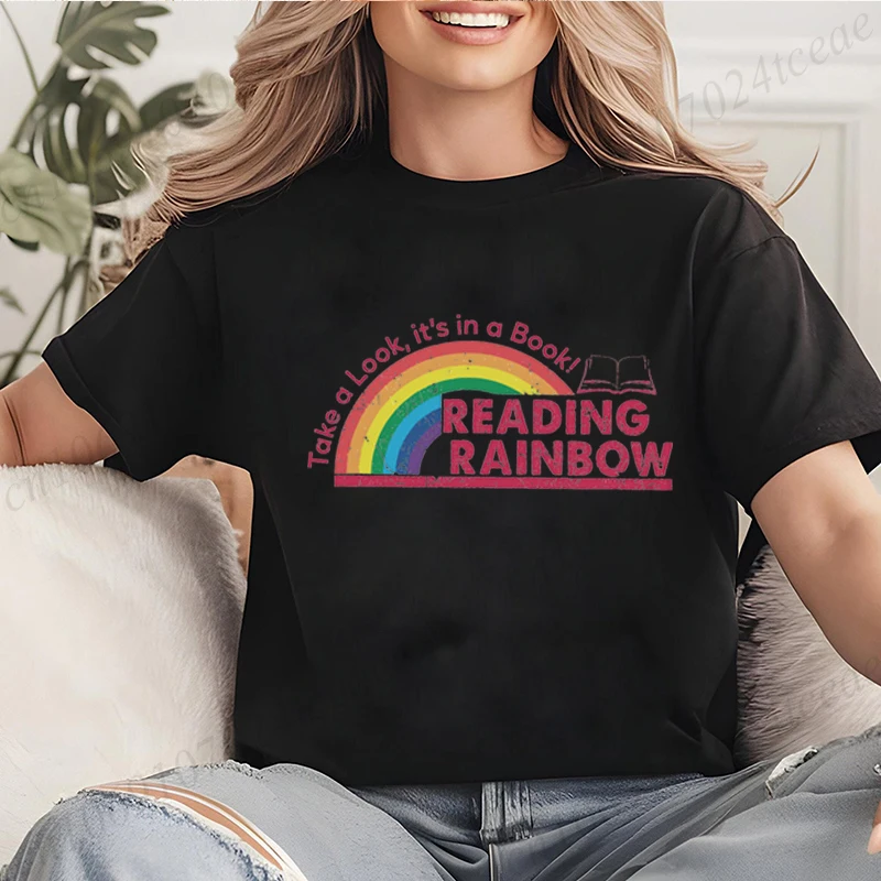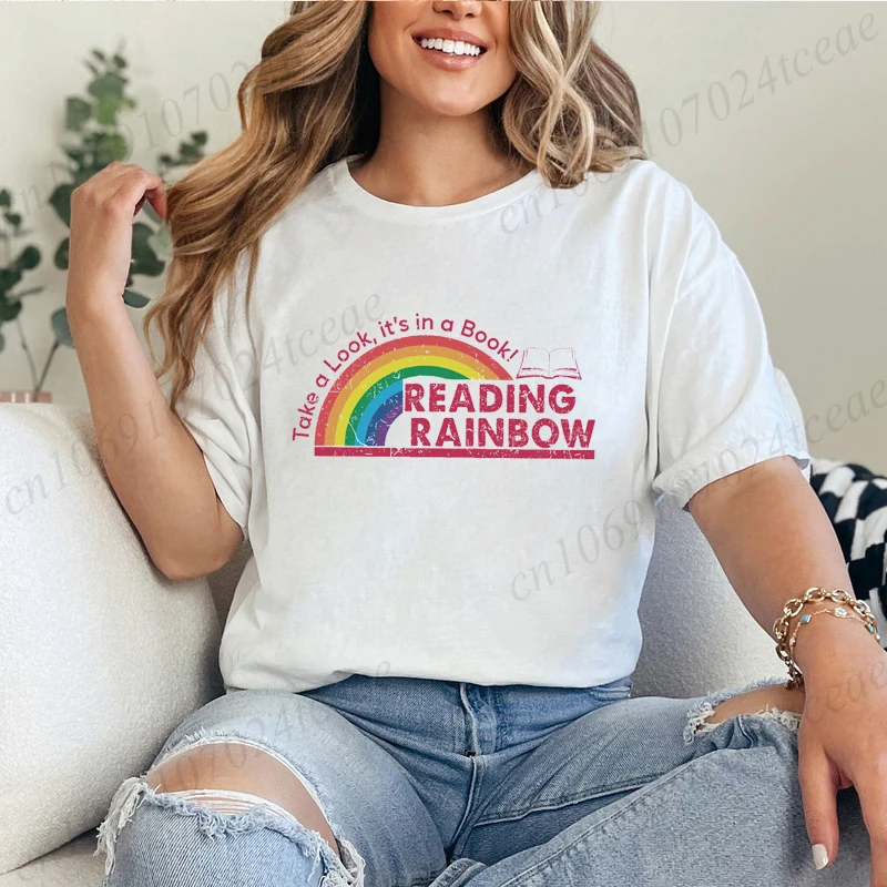 Take A Look It’s in A Book Women’s T-shirt Casual Reading Rainbow Print Tshirt Comfortable Casual Women’s Clothing Book Club Top